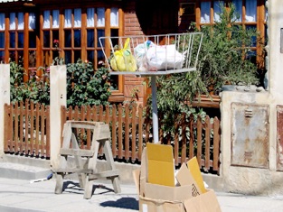 left: As a followup, the picture on the left shows how the people get rid of their garbage. They pack it in plastic bag and put them in baskets high above the ground for the garbage pickup.
