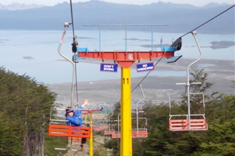 left: The chair lift to the glacier. The Beagle Channel is in the background.