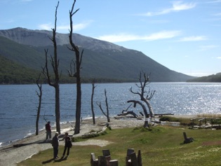 The next day was unusually nice for Ushaia. Sunshine, dry, and warm; in the 70’s. The locals were amazed. We told them we had taken our weather along from sunny California. We were picked up at 8:15 for our tour to the Tierra del Fuego National Park. There were about 40 tourists in the bus but when the guide asked who wanted English, only two couples put up their hands. We were one of them. The other pair belonged to a Chinese couple from Taiwan, whose English was not too good but whose Spanish was non-existent.