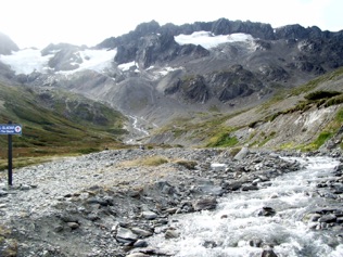It is a nice, easy hike and you can walk up along the stream or through the forest. There are very nice views of the glacier in front of you. Looking back you see the Beagle Channel and Ushuaia below you. I think the foot of the glacier must have receded about 100 feet since I was there nine years ago. Back from the glacier you can relax at the cafe at the top of the funicular with a sandwich and a glass of beer.