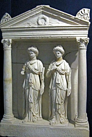 On the left is a picture of a sculpture of two similar goddesses. It is good to have them on your side and let your enemies know about it. What is interesting are the “dediculas” they each hold in their left hands. This is a rod, with which they can measure the number of the significant deeds of a person, both good and bad. I wonder whether I can buy one on e-Bay.