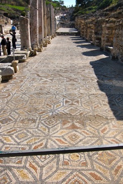 left: the mosaic-covered sidewalk of Curetes Street close to the area of the “Terrace Houses”