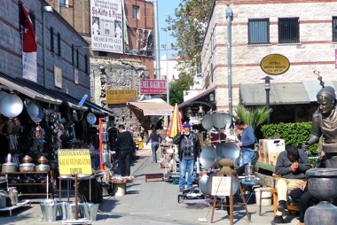 right: The Street of the Ironmongers. Beside utilitarian articles they also display metal sculptures for the tourists, some of them a bit too large to carry in a suitcase back home.