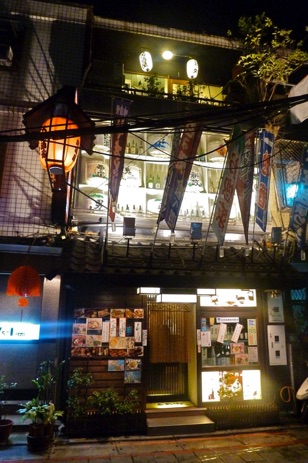 right: The Izakaya-nonbei restaurant in Taipei in the evening. Very Japanese looking.