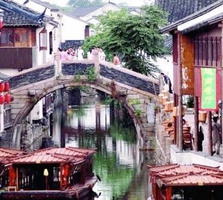 There are eight side bridges on the riverbanks and seven bridges spanning the canal. The most famous is Tonggui Bridge, a single arch stone bridge. It is 21 yards (19 meters) long in its river crossing and 2.5 yards (2.3 meters) wide. Looking like a half moon, the aperture of the bridge and its shadow in the water form a perfect circle. The bridge is not unique, but it is the most photographed.