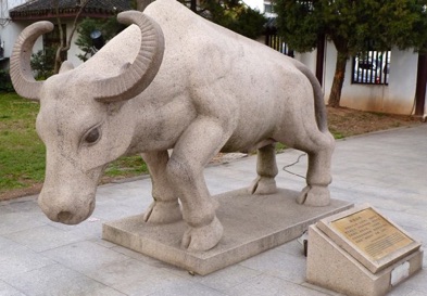 left: This modern sculpture of the white ox has been financed by the Suzhou Municipality to praise the devotion of this ox. The sculpture is next to the pagoda