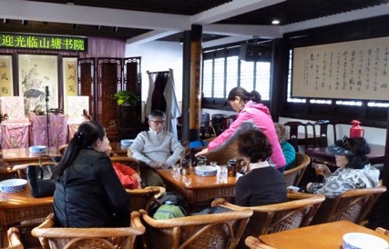 The Chinese tea house is a place to go for some serious tea drinking and to watch and listen to special entertainment. It is not a place for a casual cup of cheap green tea. Here we shared two pots of a black and a green tea for RMB 180, the price is discounted because the proprietor realized we were just some lost, thirsty foreigners. And of course we had to disappoint the performers who had been waiting all day for a gig.