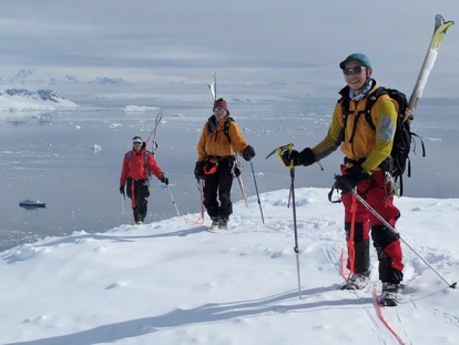 left: You can also go skiing in Antarctica, if you so desire. It is not inexpensive, and there are no ski lifts, so you have to slog up the mountains before you can ski downhill in this most unusual and beautiful surroundings. In front is Launce Gouw, in professional life an oncologist specialist in lymphoma, who has skied in over 100 different locations all over the world. This picture was taken in 2013.