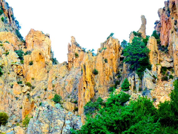 The island is divided in two “departments”, Haute Corse (Northern Corsica) and Corse-du-Sud (Southern Corsica). The island is quite mountainous, with mountains along the spine of the island more to the West. The western part of the island is where most of the mountains are; here the roads are curvy and driving is slow. The problem is exacerbated because this is the most scenic part of the island, and giant tourbuses on these small roads can really clog up the traffic.