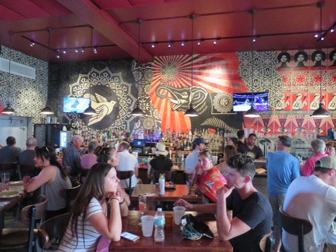 This café/restaurant is right at the Wynnwood Walls. It is always very busy, because they are the only one close to the Walls. And they have bathrooms, admittedly for their clients only, but used by about everyone in the know.
