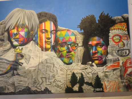 left: And this work is by Eduardo Kobra showing Mt Rushmore with the effigies of current top artists; Andy Warhol, Frieda Kahlo, Keith Haring, and J.M. Basquiat.