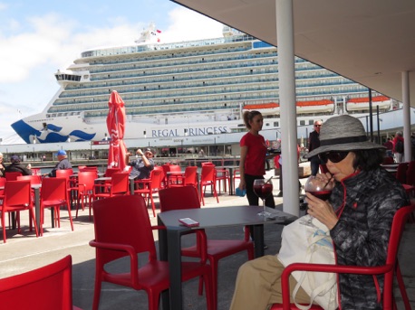 In the afternoon, we walked out of the ship to the large adjacent quay, where there were lots of cafés, shops, etc. to sit down for a beer.