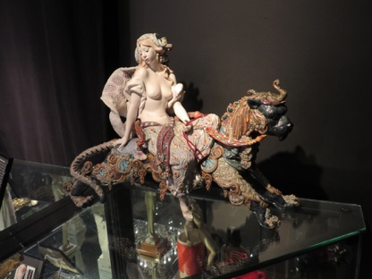 Carnival in Venice is one of the greatest artistic and technical challenge undertaken by the Spanish Lladró porcelain brand. It took them 5 years of research and testing and some 22,000 hours of work were provided by some 35 artists. This assembly has 450 pieces, and shows 14 different characters, mostly inspired by commedia dell’arte. A limited edition of just 100 units were produced of this work. I wonder how much one set would be quoted at The Antique Show.