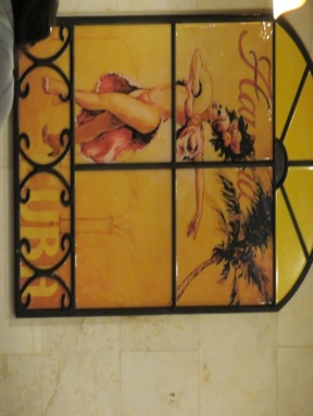 left: A glass in lead piece in the back of the restaurant.