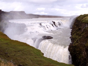 Earlier, Gullfoss was part of a nearby farm, Brattholt, owned by the farmer Tomas Tomasson and his daughter Sigridur Tomasdottir. Foreign investors were close to buying Gullfoss to harness it for electricity generation and also charge visitors a fee for viewing. The farmer and his daughter took the case to the parliament, and Sigridur even threatened to drown herself in the waterfall if the deal went ahead. The government intervened, purchased the falls, and allowed the falls to stay as it was. Maybe I should say a few words about Scandinavian names. From his name you can derive that he has a dad named Tomas; that is why his last name is Tomasson, the son of Tomas. Sigridur’s dad is also a Tomas, so her last name is Tomasdottir, or the daughter of Tomas. So it is possible to have a family of husband, wife, son and daughter, all with different last names.