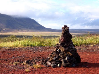 Everywhere in the desolate landscape you see these cairns of stone as shown in the picture on the right. They were used as road markers in the old days.