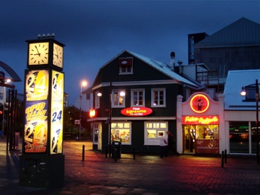 There is a regular bus service by Flybus, the bus company associated with Iceland Air, who will drop you off at your Reykjavik hotel for around $9 per person. Or, you could take a taxi and pay $90. But, to make things easier, a representative from Great Canadian Travel was waiting for us. The poor guy must have rolled out of his warm bed at 4 in the morning to be there at the airport in time. It was just before 6:00 a.m. and the country looked cold and desolate. It was around 50˚F and there was just a light wind. For Iceland, this is beautiful weather. Along the road we saw an electronic display with three sets of numbers. One was the air temperature, the other was the temperature on the surface of the road, the third showed the velocity and the direction of the wind. Traveling can be hazardous in Iceland and these numbers tell you when to be extra cautious.