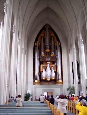 left: Interior of the Hallgrimskirkaja Church, the largest church in Iceland.