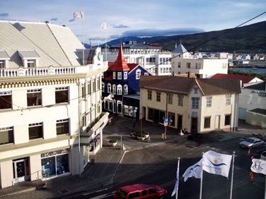 Akureyri, also called the “Capital of the North” reminds some of us of a village in the Swiss Alps. The city is elongated and built along the Eyjafjőrður fjord. It is surrounded by high mountains, on which I counted at least 7 hanging glaciers when viewed from across the fjord. They should have made Akureyri the capital instead of Reykjavik. The town has a surprisingly mild climate; the temperature is almost always several degrees higher than in Reykjavik and there is much less wind. Many people from Reykjavik actually fly in here to spend the weekend to enjoy the nicer weather.