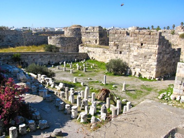 If you are in Kos for the first time, you have to view the Asklepeion. An Asklepeion is a healing temple, sacred to the god Asclepius, the great healer. The famous Greek physician Hippocratus is said to have received his medical training at the Asklepeion in Kos. The Asklepeion is situated 4 km southeast of Kos, From the cruise ship the best way to get there is with the blue tourist mini-elephant train. After you disembark walk along the shore with the water on your left and the castle walls on the right until you get to the bus stop, around where the castle walls end. This is where the blue train starts..