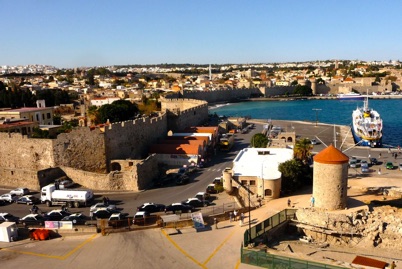 left: View of Rhodes from cruise ship. You can see the walls of the Old City.