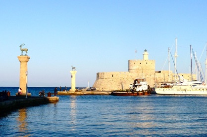 At the end of the day, we walked out of the city, past the ruins of the Temple of Aphrodite, to the entrance of Mandraki Harbor. Two bronze deer statues mark the spot where the feet of the Colossus once stood.