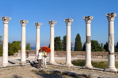 left: Norma and Millie at the Temple of Apollo on the middle level of the Asklepeion