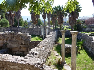 right: the top terrace of the Asklepion in Kos