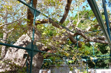The tree is not only old; it looks old. But not that old. Maybe 600 years old. It could be a descendant of the original tree, which allegedly stood here 2400 years ago. Metal structures give support to the creaky and hollow limbs; it is a sad-looking tree.