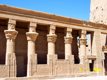 right: Graceful columns flanking the Hypostyle in the Temple of Philae. This temple was rescued from the rising waters of the Nile and rebuilt on another island.