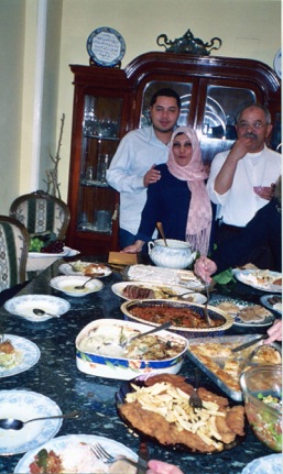 One evening in Cairo we were guests for dinner in the house of an Egyptian family. This was a prearranged “meet the people” dinner, arranged by our tour operators, to “achieve a better understanding of the country”. The hosts receive reimbursement for their efforts. For some of them, this means extra income; for others, they are genuinely interested in meeting with Americans, to talk to them and to exchange views on Egypt and America as seen by them and by their guests. Our host owns a small factory making those small paper bags containing sugar you see in restaurants. They were obviously upper middle class. The Lebanese food they served was copious and excellent. They were very kind and hospitable.