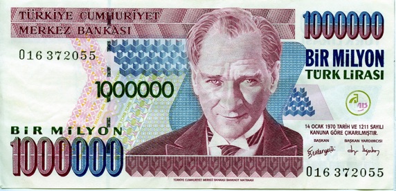 This 1,000,000 Turkish lira was worth slightly less than one US$. (3)