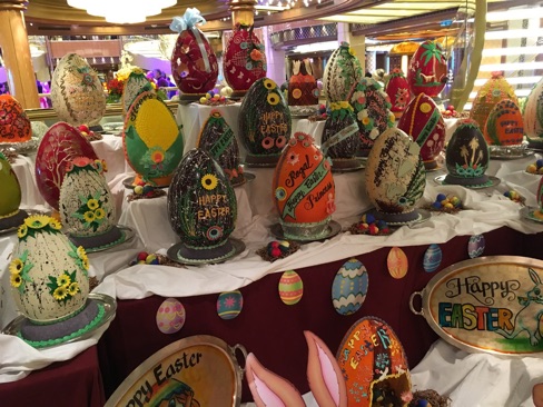 left: It was Easter and the culinary crew had prepared these Easter eggs for display.